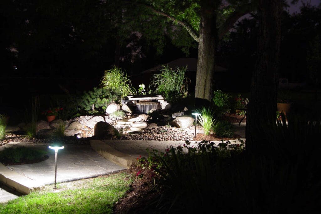 Why be limited to enjoying your landscape in the daytime? Add some outdoor lights to highlight your landscape at all hours and improve the safety and security of your home.
